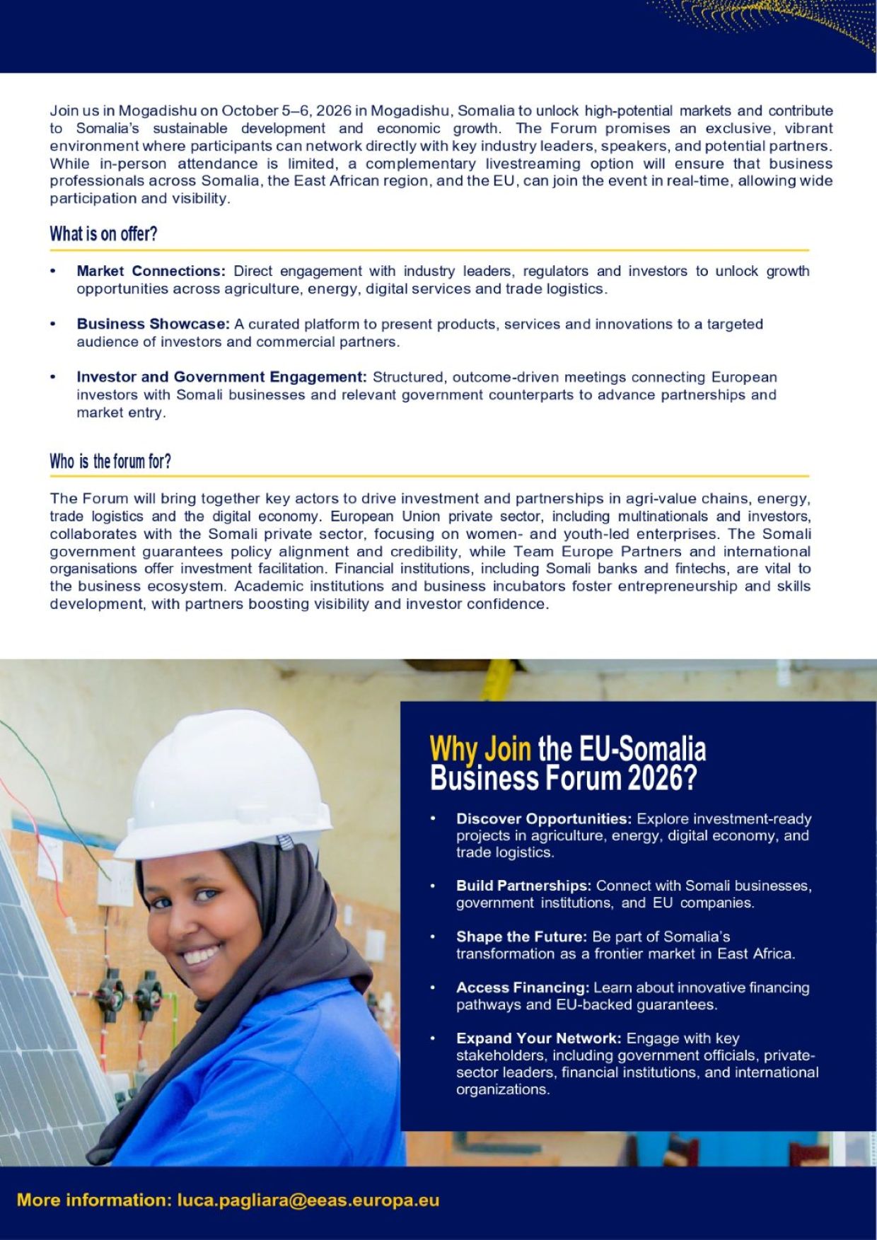 The ITBP is a collaborative platform that promotes investment, trade, and business development between the European Union and Somalia.